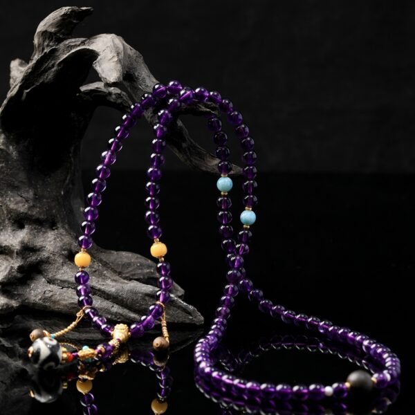 Natural Amethyst 108-Bead Hand-Knotted Mala