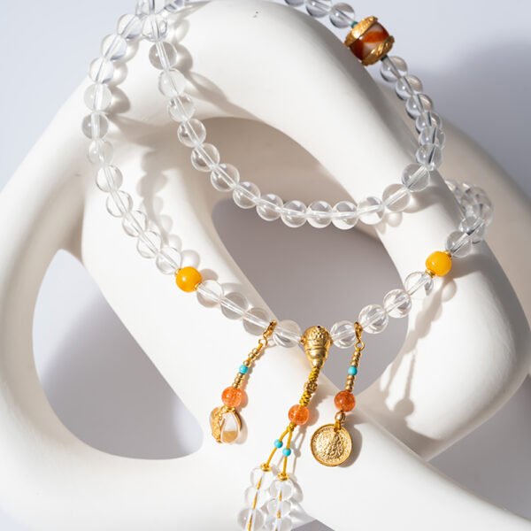 Natural Rice-shaped Clear Quartz Bracelet with Hetian Jade Spacers